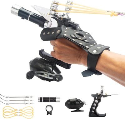 La resortera profesional táctica está fabricada en resistente resina ABS con un marco grueso y duradero, equipada con una banda de alta elasticidad que ofrece gran velocidad de rebote sin deformarse ni romperse. Su diseño ergonómico con mango de precisión brinda un agarre cómodo y seguro, mientras que la cabeza del arco incorpora un punto de referencia que mejora notablemente la puntería, permitiendo además instalar entre 4 y 6 bandas elásticas. Incluye una práctica muñequera de cuero plegable que aporta mayor estabilidad al disparo y se pliega fácilmente para un almacenamiento compacto, ideal para caza y aventuras al aire libre. Este kit completo de pesca trae una resortera de muñeca, dos bandas de repuesto, tres dardos de acero inoxidable y un carrete, ofreciendo versatilidad para usarla tanto en pesca y caza como en actividades recreativas. El carrete puede desmontarse para emplear la resortera como un tirachinas tradicional, convirtiéndola en una herramienta multifuncional con un amplio rango de aplicaciones.